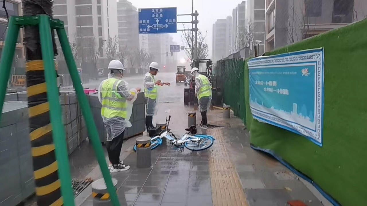 当天下午,宁波市高新区建设局下发应急抢险任务,众诚工程公司“应急抢险救援队”第一时间赶往相关危险路段。从接到通知、准备、集结、出发到抵达,“应急抢险救援队”一气呵成,耗时仅20分钟。抵达后,“应急抢险救援队”对需要重点关注的存在安全隐患的人行道等低洼路段进行拉线警戒,严防强降雨可能引发的城市内涝等问题引起次生灾害。在风雨中行动的这2个小时,“应急抢险救援队”争分夺秒,用又好又快的实际行动检验了公司应急抢险意识和应急反应能力的卓越,也彰显了公司上下联动、齐心协力切实保障人民群众生命财产安全的气魄与决心。