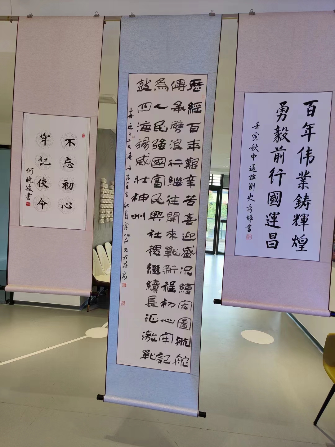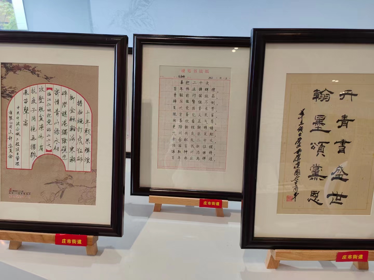 收看完激动人心的二十大报告后,各党支部负责人还参观了街道组织策划的各企业喜迎二十大的书法展览。这些作品主题鲜明、内容丰富、取材广泛,融时代性、思想性和艺术性于一体,热情讴歌了党的丰功伟绩和祖国的巨大变化,充分表达了“坚定不移跟党走”的理想信念,全面展现了“脚踏实地、砥砺前行”的时代精神风貌。