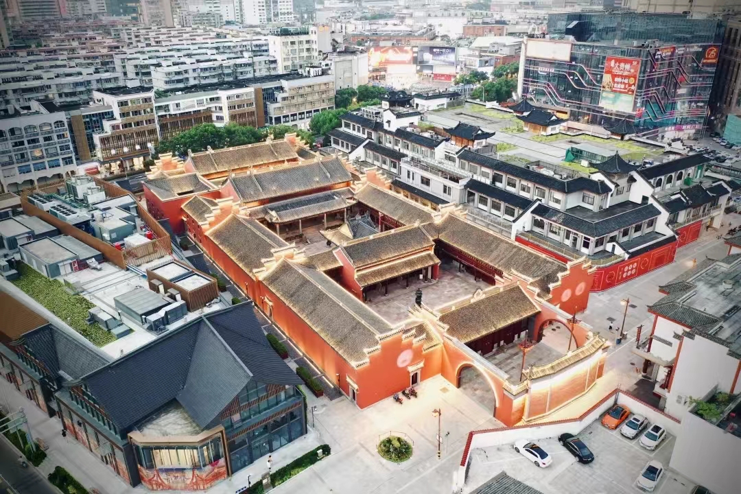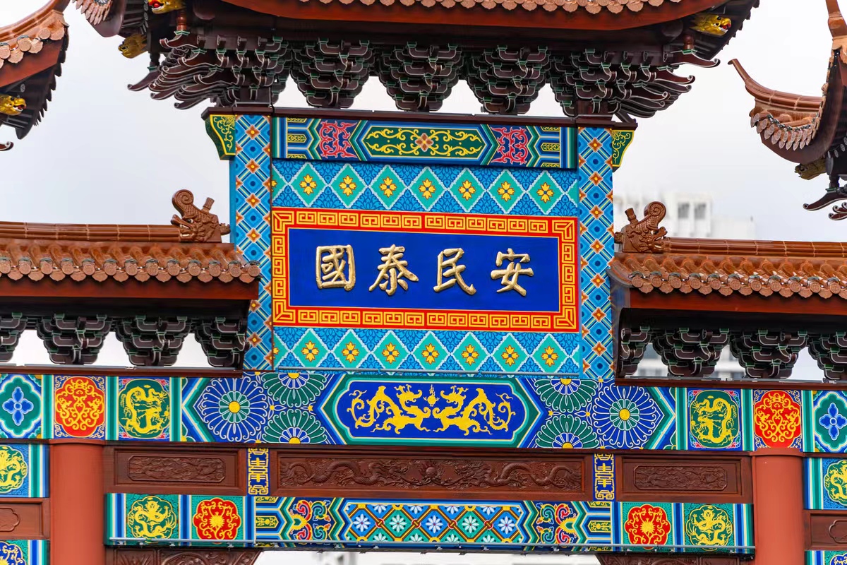 修缮后的城隍庙牌坊浮雕精工细琢,斗拱层叠,檐角飞翘,彩绘图案色彩亮丽、刻画精美,四根朱红色的立柱明亮可鉴、气势恢弘,匾额上的“国泰民安”四个字寄托了对这座城市的美好祝愿。