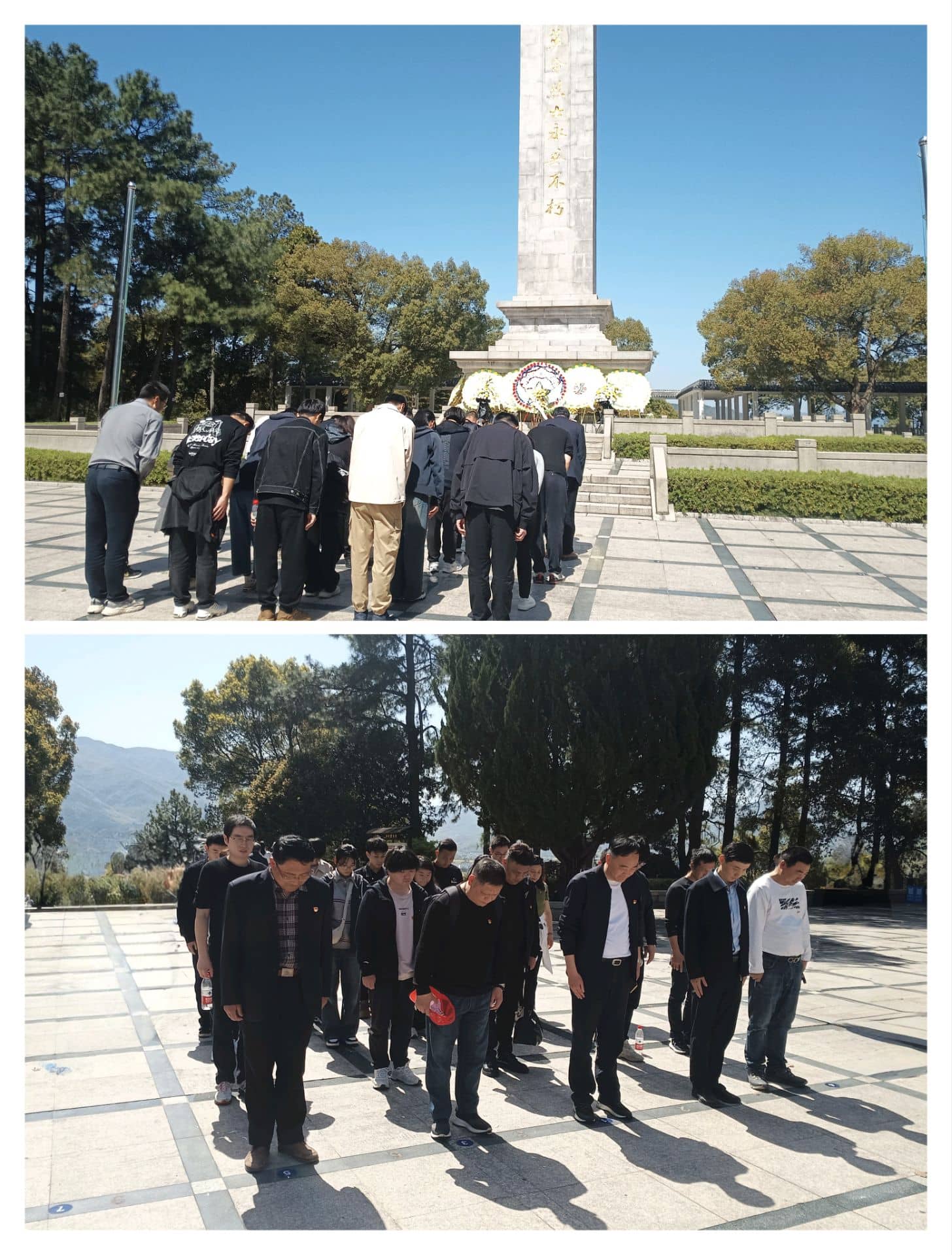 在烈士纪念碑前,党员干部和职工整齐列队,肃立默哀,向烈士们深深鞠躬,瞻仰着他们的英勇形象。以简朴而虔诚的方式,表达了对革命先烈的崇敬和怀念之情,心灵得到了洗礼和升华。这一刻,他们更加坚定了信仰,铭记了使命。