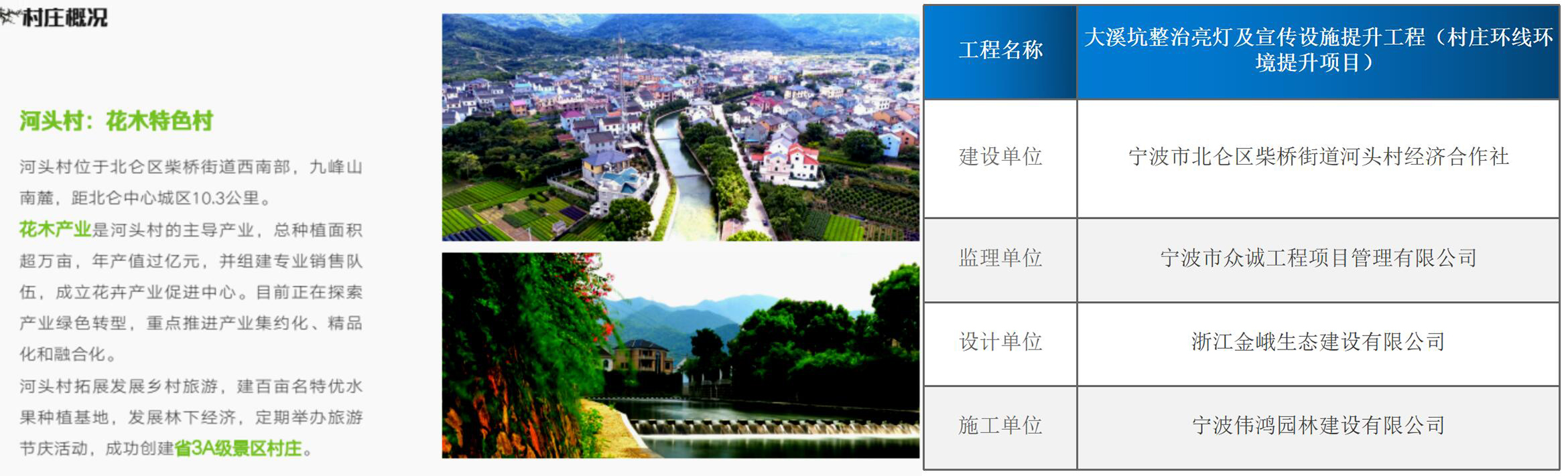 工程位于北仑区柴桥街道河头村(中国杜鹃之乡),本工程主要对公园廊架、儿童活动设施、停车位、入口景墙、未来邻里中心、建筑立面、形象墙立面、沿线建筑立面、驿站格栅立面、智慧公交站、河道景观小品等施工,总造价约200万元。(全过程监理)